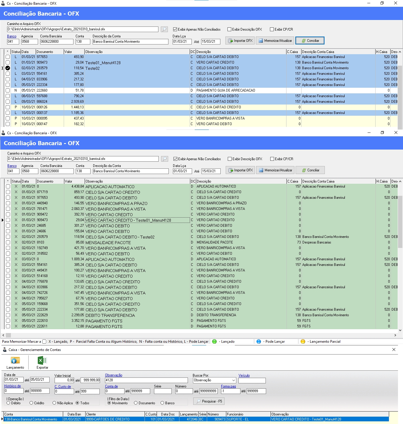 Caminho: Administrador > Caixa > Movimento > Conciliação Bancaria OFX