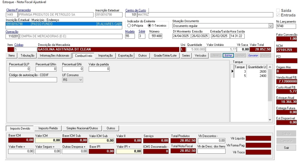 Na importação da NF-e, foi ajustado o processo para que as informações de PIS e COFINS sejam buscadas diretamente na tributação da mercadoria, caso não estejam configuradas nas abas de PIS e COFINS das tributações por UF.