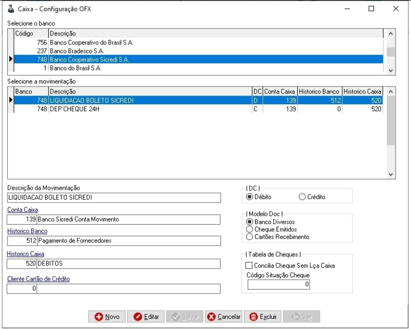 Antes, o sistema buscava a descrição completa vinda do arquivo OFX para identificar as configurações e preencher os dados na tela. Contudo, o Sicredi passou a manter a descrição inicial e acrescentar informações adicionais em cada lançamento, dificultando a identificação correta.