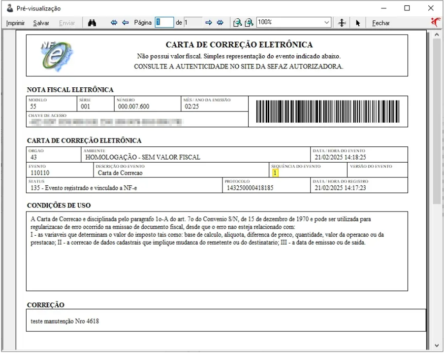 Na primeira carta de correção de uma NFe, o sistema gera automaticamente o evento número 1