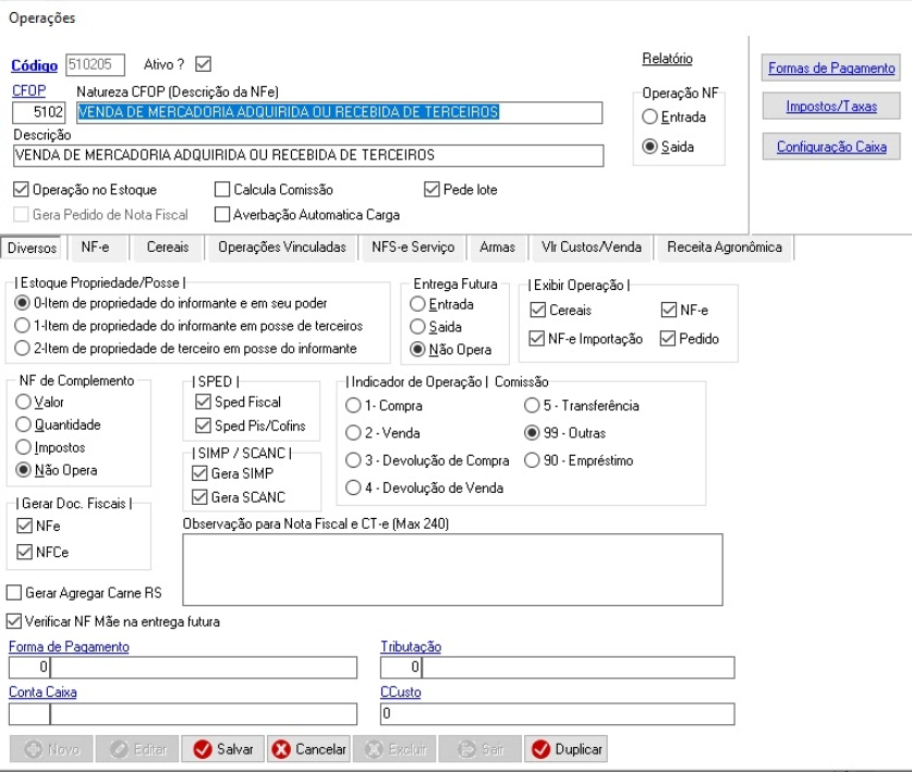 Quando criado um novo cadastro de operação leva para o campo Descrição o mesmo texto da “Natureza CFOP”.