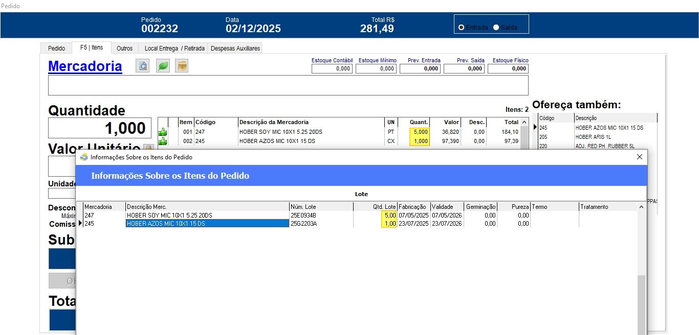 Em alguns casos, as quantidades dos lotes não correspondiam aos itens do pedido e as alterações não eram salvas corretamente.