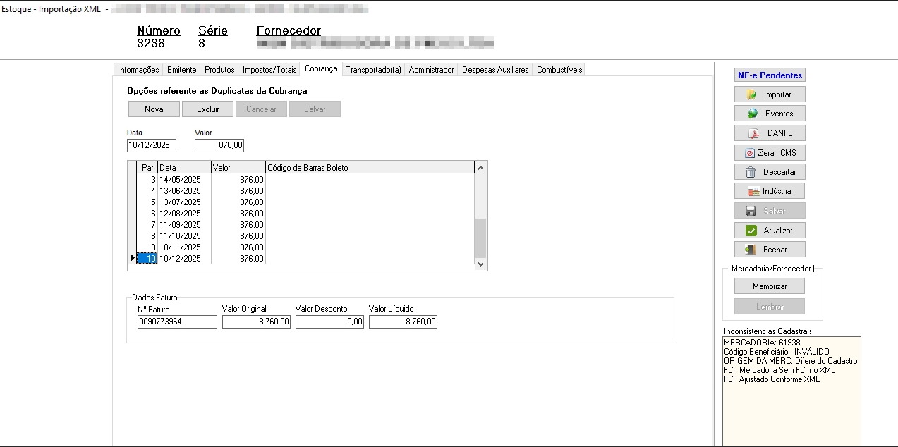 Corrigido um problema na importação de notas fiscais em "Estoque > Importar NF", onde parcelas podiam ficar com numeração duplicada, mesmo com o XML correto.